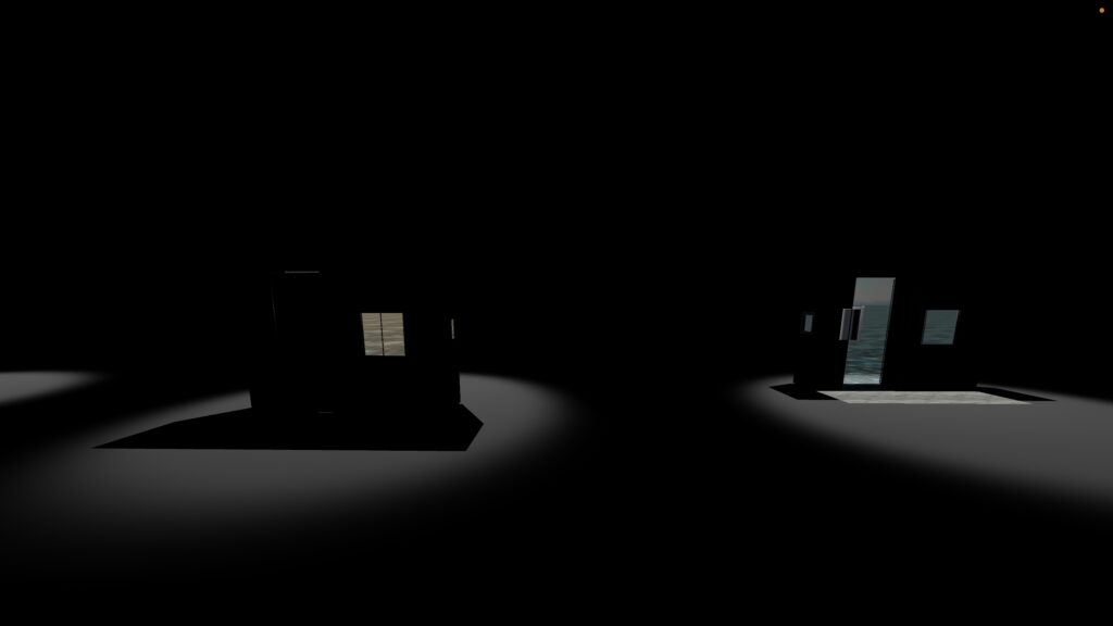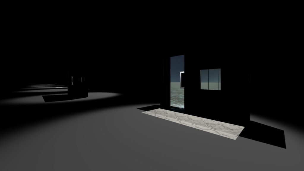 電車自体は見せずその影は床に映し、さらに電車の内部に入った時のみSkyboxが映されるような状況を作るために、シェーダーのコーディングに時間をかけた。また体験者の位置に応じて電車を動かすか電車の走る世界を動かすかを切り替えられるプログラムをPlaymakerで実装した。